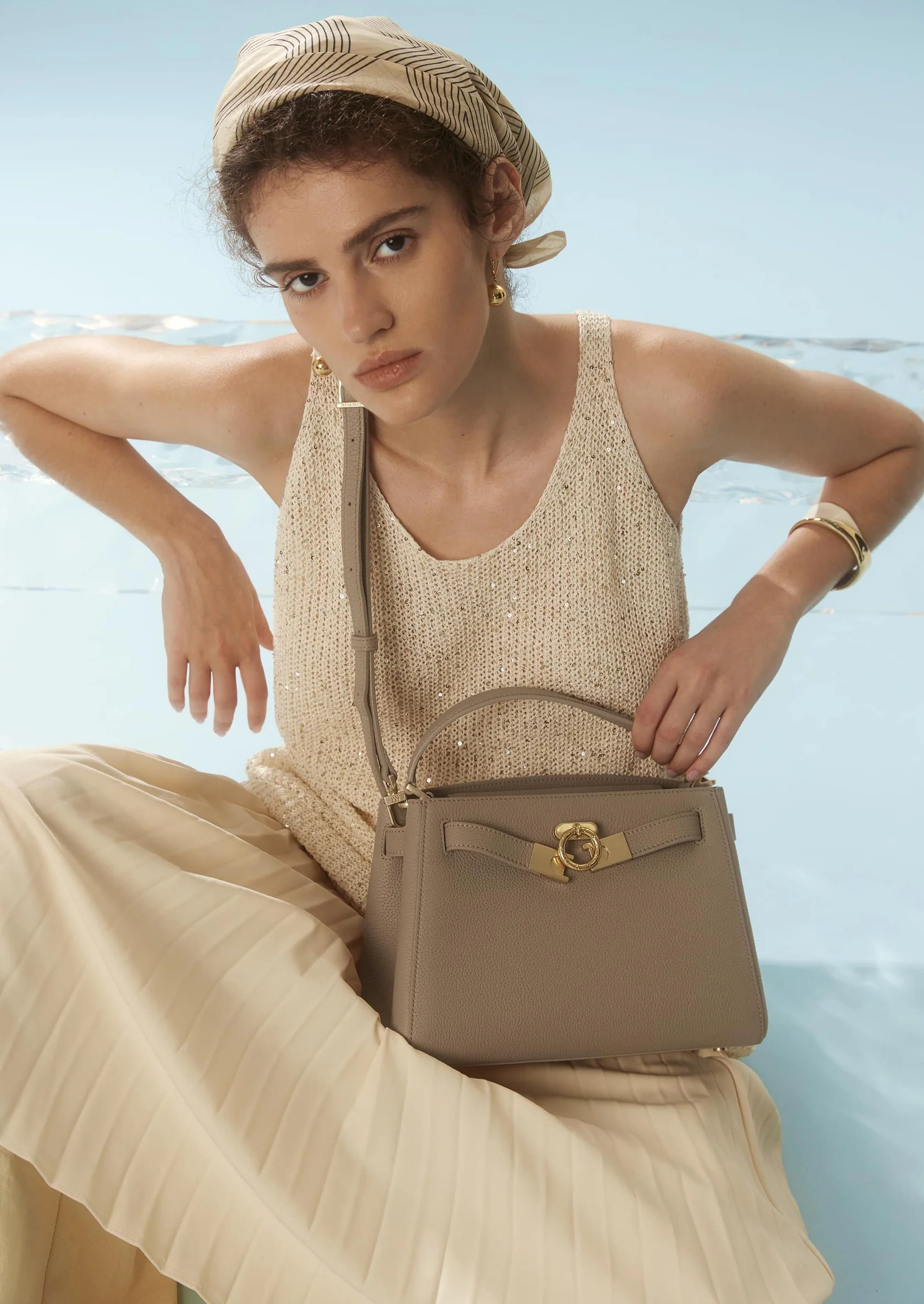 Le sac Madison, fabriqué en cuir de veau italien grainé, se distingue par sa texture unique et son style rétro chic. Son cadenas signature évoque l’élégance des accessoires vintage de Madison Avenue à New York. Grâce à sa bandoulière amovible, il peut se porter de jour comme de nuit. Élégant, pratique et disponible en trois tailles, c’est l’accessoire idéal pour un look sophistiqué au quotidien.
